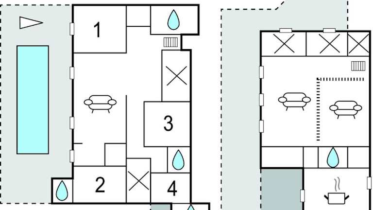 Das Ferienhaus verfügt über vier Schlafzimmer, ein gut ausgestattete Küche mit Kühlschrank und Geschirrspüler sowie vier Badezimmer mit Dusche. Zur technischen Ausstattung gehört ein TV mit Kabelkanälen.