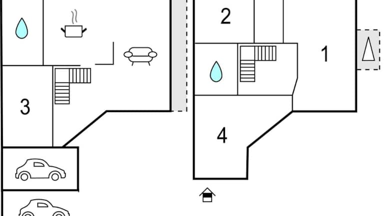 Das Ferienhaus umfasst eine voll ausgestattete Küche mit Kühlschrank und Kaffeemaschine, sowie zwei Badezimmer mit Dusche und Badewanne.
