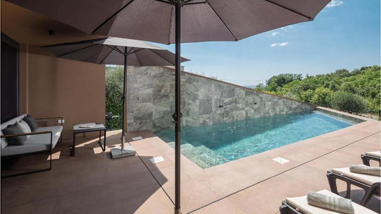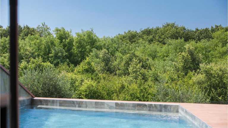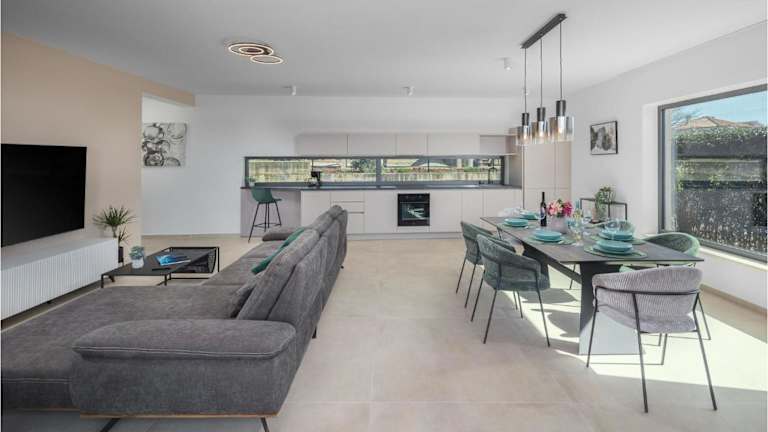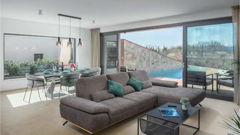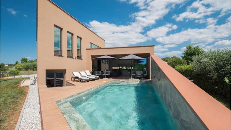 Die Unterkunft befindet sich in Filipac, direkt am Strand, und bietet einen eigenen Pool. Die nähere Umgebung umfasst den Strand Karpinjan in einer Entfernung von 2,2 km sowie den Aquapark Istralandia, der 4,6 km entfernt liegt. Die Stadt Poreč und die Euphrasius-Basilika sind jeweils 17 km entfernt. Der nächstgelegene Flughafen ist der Flughafen Pula, 71 km von der Unterkunft.