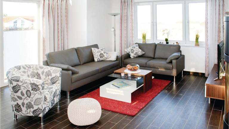 Das Ferienhaus besteht aus drei Schlafzimmern, einem Wohnzimmer und drei Badezimmern, die mit Dusche und Badewanne ausgestattet sind. Ein Fernseher ist ebenfalls vorhanden.