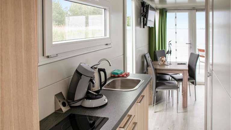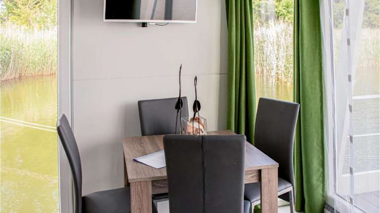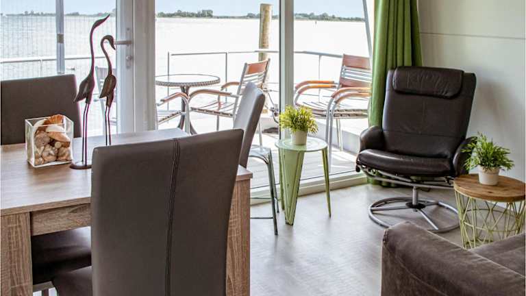 Das Boot verfügt über zwei Schlafzimmer, ein Wohnzimmer sowie eine voll ausgestattete Küche, die mit einem Kühlschrank und einer Kaffeemaschine ausgestattet ist. Des Weiteren gibt es ein Badezimmer mit Dusche. Die Unterkunft bietet zudem Gartenmöbel.