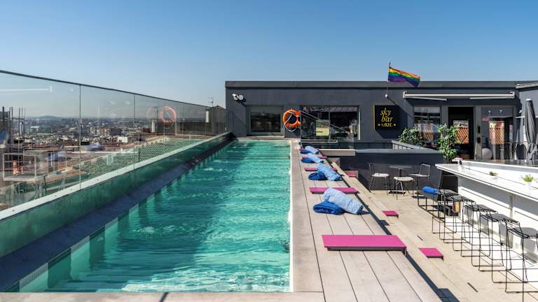 Das Axel Hotel Madrid - Adults Only ist ein stilvolles Boutique-Hotel im Herzen von Madrid. Es bietet eine LGBT-freundliche Atmosphäre und begrüßt auch heterosexuelle Gäste. Das Hotel verfügt über stilvolle Zimmer, ein Restaurant mit regionaler Küche und eine Dachterrasse mit Sky-Bar und Pool. Die Lage ist ideal, um die Plaza Mayor und den Bahnhof Madrid Atocha zu besuchen.