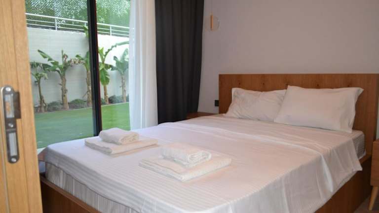 Ayayorgide odalar banyolu sıfır bietet Übernachtungsmöglichkeiten in Form einer klimatisierten Villa, die mit einem Garten, einer Terrasse und einem saisonalen Außenpool ausgestattet ist. Die Unterkunft ermöglicht einen Blick auf den Garten und bietet kostenfreies WLAN.