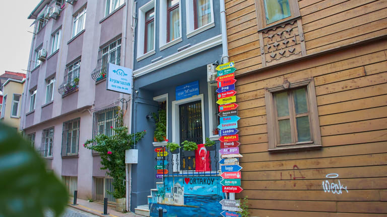 Das Ortakoy Aysem Sultan Hotel befindet sich im lebhaften Viertel Ortaköy in Istanbul und ist nur 2 Gehminuten vom Bosporus entfernt. In unmittelbarer Nähe finden Sie zahlreiche Unterhaltungsmöglichkeiten. Die Straßenbahnhaltestelle Kabatas, die eine bequeme Anbindung zum historischen Stadtteil Sultanahmet bietet, ist weniger als 4 km entfernt. Der Flughafen Istanbul-Atatürk ist etwa 24 km vom Hotel entfernt.