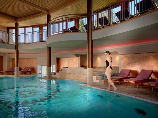 In unserem Wellness- und Saunabereich bieten wir drei Heilthermalbecken, einen ganzjährig beheizten Außenpool mit Liegewiese in der warmen Jahreszeit, ausgedehnte Ruhebereiche an den Innenpools und in der Saunawelt, eine Außensauna "Lautrum", eine Solesauna, eine steirische Kräutersauna, ein Mineraliendampfbad, eine Infrarotsauna und einen Eisbrunnen. Lassen Sie sich bei authentisch ayurvedischen, aber auch klassischen Behandlungen und Massagen in unserem Spa verwöhnen. Für Sport im Freien stehen Ihnen gratis Fahrräder inkl. Radhelmen oder Nordic-Walking-Stöcke zur Verfügung. Im Rahmen unseres täglichen Aktiv- & Entspannungsprogramm haben Sie die Möglichkeit bei Wasser- oder Wirbelsäulengymnastik, Yoga, Meditationsübungen oder Ähnlichem teilzunehmen. Ebenso wird ein großer Fitnessraum mit hochwertigen und neuen Geräten geboten. Für Golfer bieten wir Ermäßigungen der Greenfees an - der Golfplatz Bad Waltersdorf ist drei Autominuten vom Hotel entfernt.