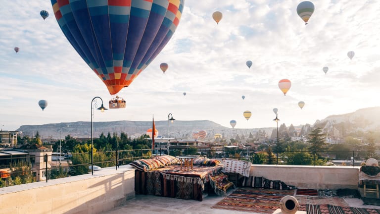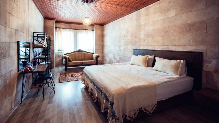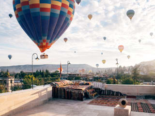Das Azalea Terrace Hotel in Göreme ist die perfekte Unterkunft für Reisende, die eine ruhige und entspannte Atmosphäre suchen. Mit einem schönen Garten, einer Terrasse und Blick auf die Berge können Sie die Natur und die Schönheit der Umgebung genießen. Das Hotel bietet zudem eine 24-Stunden-Rezeption, Flughafentransfers und kostenfreies WLAN. Die Zimmer sind komfortabel eingerichtet und verfügen über ein eigenes Badezimmer sowie einen Sitzbereich. Das tägliche Frühstück bietet eine Auswahl an kontinentalen, amerikanischen oder vegetarischen Speisen. In der Umgebung können Sie Aktivitäten wie Radfahren unternehmen. Der nächstgelegene Flughafen befindet sich 38 km entfernt.