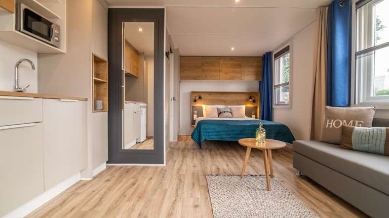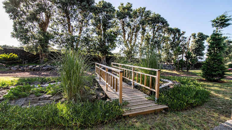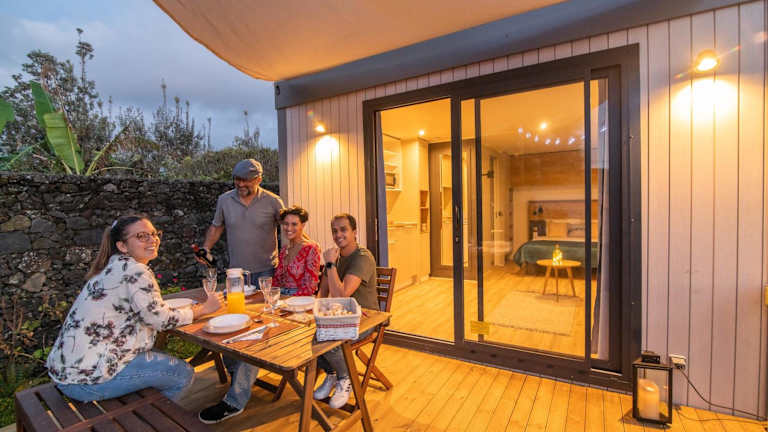 Das Ferienhaus im Azor'Oasis verfügt über ein gemütliches Schlafzimmer und ein gut ausgestattetes Badezimmer. Die Küchenzeile bietet alles, was Sie für die Zubereitung Ihrer Mahlzeiten benötigen, darunter ein Kühlschrank, eine Mikrowelle und ein Kochfeld. Genießen Sie den Komfort des Kabel-TV und des kostenfreien WLANs. Die Terrasse bietet einen herrlichen Blick auf den Garten.
