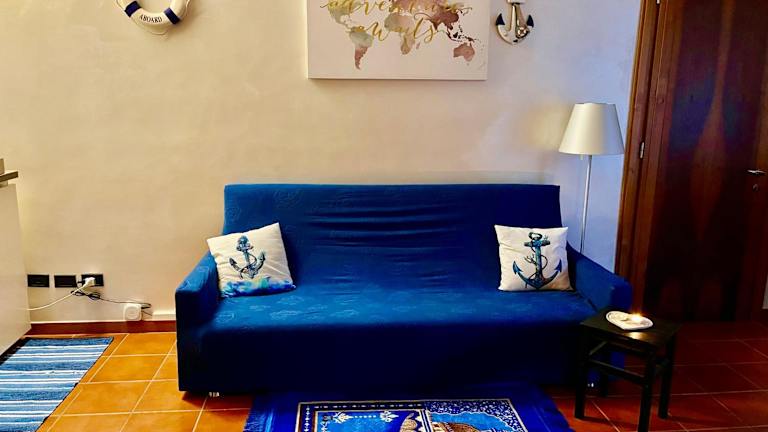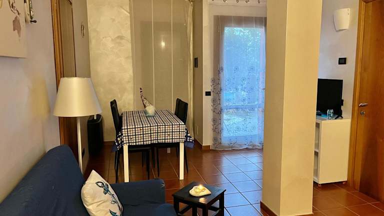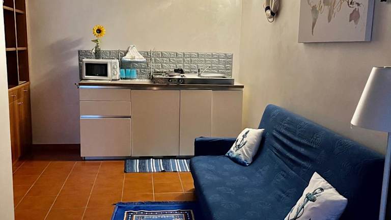 Die Ferienwohnung verfügt über ein Schlafzimmer, ein Wohnzimmer und eine voll ausgestattete Küche mit Kühlschrank und Kaffeemaschine. Das Badezimmer ist mit einem Bidet und einer Dusche ausgestattet. Handtücher und Bettwäsche werden zur Verfügung gestellt.
