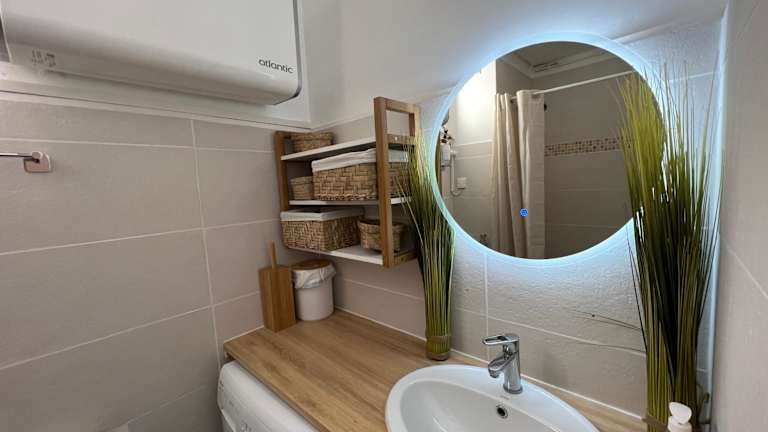 Die Ferienwohnung besteht aus einem Schlafzimmer, einem Wohnzimmer und einem Badezimmer, das mit einer Badewanne oder Dusche sowie einem Haartrockner ausgestattet ist. Handtücher und Bettwäsche werden bereitgestellt.