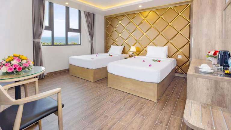 Die Zimmer im Azura Gold Hotel & Apartment bieten den Gästen eine herrliche Aussicht auf das Meer, was den Aufenthalt noch angenehmer macht. Die Zimmer sind komfortabel eingerichtet und verfügen über Annehmlichkeiten wie Kabel-TV, eine Minibar und ein eigenes Badezimmer mit Dusche und Pflegeprodukten. Einige Zimmer bieten sogar eine Badewanne, in der Gäste sich nach einem langen Tag entspannen können.
