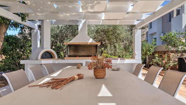 Die Villa verfügt über 5 Schlafzimmer und 3 Badezimmer. Zur Ausstattung gehören Bettwäsche, Handtücher, ein TV mit Satellitenkanälen, ein Essbereich, eine voll ausgestattete Küche sowie eine Terrasse mit Meerblick.