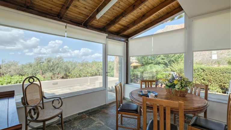 Die Villa verfügt über 5 Schlafzimmer und 3 Badezimmer. Zur Ausstattung gehören Bettwäsche, Handtücher, ein TV mit Satellitenkanälen, ein Essbereich, eine voll ausgestattete Küche sowie eine Terrasse mit Meerblick.