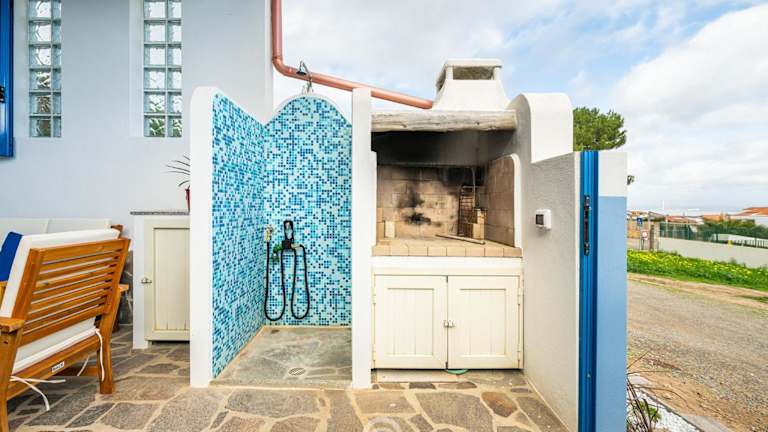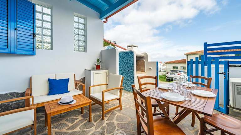Azure House bietet Übernachtungsmöglichkeiten in Form eines Ferienhauses, das mit einem Garten, einer Terrasse, Grillmöglichkeiten und kostenlosem WLAN ausgestattet ist. Zu den Annehmlichkeiten gehört auch eine Veranda oder ein Patio für entspannte Momente im Freien.