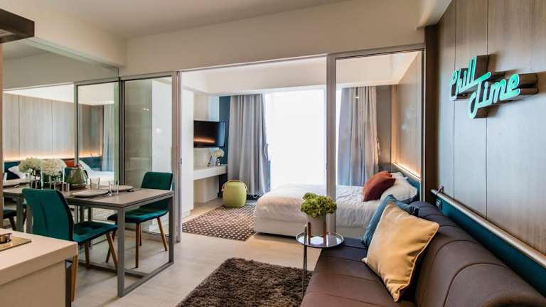 Das Azure Beach Resort Manila by Radlett ist eine ideale Unterkunft in Paranaque, Manila. Hier erwarten Sie ein komfortables und klimatisiertes Apartment mit kostenfreiem WLAN und Zugang zu exklusiven Annehmlichkeiten wie dem Wellenbad, dem künstlichen Strand und dem Kinderspielplatz im Paris Hilton Beach Club. Das Apartment bietet einen Balkon mit herrlichem Stadtblick, einen gemütlichen Sitzbereich mit Schlafsofa, eine voll ausgestattete Küchenzeile und einen kleinen Essbereich. Mit einem 40-Zoll-Flachbild-TV und Online-TV-Programmen ist für Unterhaltung gesorgt. Bettwäsche, Handtücher und Pflegeprodukte stehen Ihnen ebenfalls zur Verfügung. Die Lage des Resorts ist ideal, da die Resorts World nur 7 km entfernt sind und Makati in 9 km erreichbar ist. Der internationale Flughafen Manila ist nur 5 km von der Unterkunft entfernt.