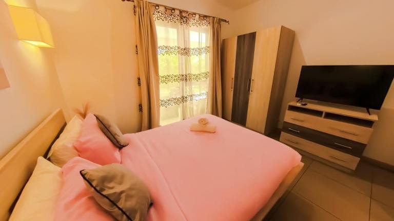 Das Azuri Village Holiday Apartment - Roches Noires bietet eine komfortable Unterkunft in Roches Noires, nur 400 m vom Strand Azuri entfernt. Mit einem Restaurant, einer Bar und einem eigenen Strandbereich bietet die Unterkunft alle Annehmlichkeiten für einen entspannten Aufenthalt. Das Ferienhaus verfügt über 3 Schlafzimmer, eine ausgestattete Küche und eine Terrasse mit Blick auf den Garten. Genießen Sie ein köstliches kontinentales Frühstück und entspannen Sie in der Sauna. Ein Kinderspielplatz und ein Golfplatz in der Nähe bieten zusätzliche Freizeitmöglichkeiten.