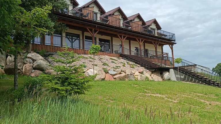 Das Azyl Widoki in Wielkie Leżno bietet eine komfortable Unterkunft mit herrlichem Seeblick und einer entspannten Atmosphäre. Die Gäste können den Garten und die Terrasse genießen und von kostenfreien Privatparkplätzen profitieren. Das Hotel verfügt über eine Gemeinschaftsküche und kostenloses WLAN. Die Zimmer sind modern eingerichtet und bieten einen Balkon mit Blick auf den See. Einige Zimmer verfügen sogar über eine Küchenzeile mit Geschirrspüler und Kochfeld. Klimaanlage und ein eigenes Badezimmer gehören zur Standardausstattung. Die Lage ist ideal für Ausflüge zur Seenplatte Brodnica. Der nächste Flughafen befindet sich etwa 107 km entfernt.