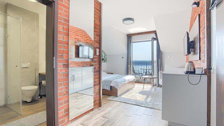 Die Zimmer im Azyl Widoki sind modern und komfortabel eingerichtet. Jedes Zimmer verfügt über einen eigenen Balkon, von dem aus die Gäste einen atemberaubenden Blick auf den See genießen können. Ein Wasserkocher steht zur Verfügung und in ausgewählten Zimmern gibt es sogar eine kleine Küchenzeile mit Geschirrspüler und Kochfeld. Alle Zimmer sind klimatisiert und verfügen über ein eigenes Badezimmer. Kostenloses WLAN ist in allen Bereichen der Unterkunft verfügbar.