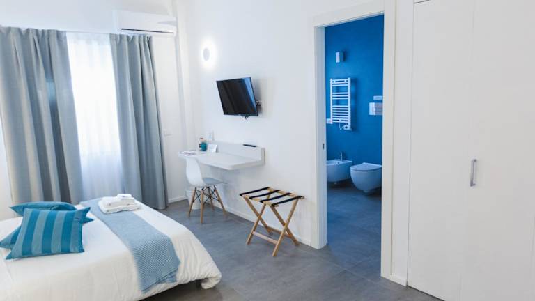 Die klimatisierten Zimmer im B&B a due passi dal mare bieten einen komfortablen Sitzbereich und einen Flachbild-Sat-TV. Das eigene Badezimmer ist mit einem Haartrockner, einem Bidet, einer Dusche und einer Badewanne ausgestattet. Genießen Sie den Meerblick von Ihrem Zimmer aus und nutzen Sie das kostenfreie WLAN, um mit Ihren Lieben in Kontakt zu bleiben.