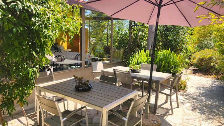 Starten Sie Ihren Tag mit einem köstlichen Frühstück auf der überdachten Terrasse des Cà De Rossana Bed&Breakfast. Hier können Sie die frische Luft und die schöne Umgebung genießen, während Sie sich mit einer Auswahl an leckeren Speisen und Getränken verwöhnen lassen.