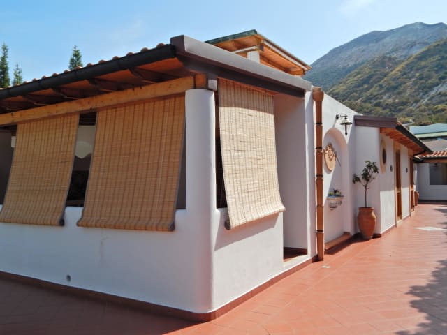 Das Casa Arcada auf der Insel Vulcano bietet eine zentrale Lage, nur wenige Gehminuten vom Strand und dem Hafen entfernt. Mit seinem schönen Garten, der Veranda und der Panoramasonnenterrasse bietet es einen herrlichen Blick auf die Küste, die Faraglioni-Felsen und den Vulkankrater Gran Cratere. Die klimatisierten Zimmer sind im typischen Stil der Liparischen Inseln gestaltet und verfügen über Annehmlichkeiten wie einen Kühlschrank und ein eigenes Bad. Ein süßes Frühstück wird auf der Terrasse serviert, von der aus Sie die atemberaubende Landschaft bewundern können.