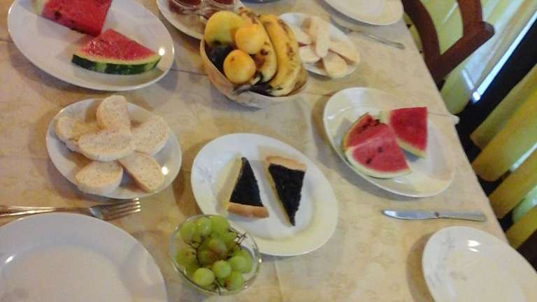 Das Frühstück im Cascina Rossano wird am Tisch serviert und bietet eine Auswahl an heißen Getränken, hausgemachten Kuchen und Marmeladen aus eigener Herstellung. Auf Wunsch können auch Aufschnitt und Käse serviert werden.