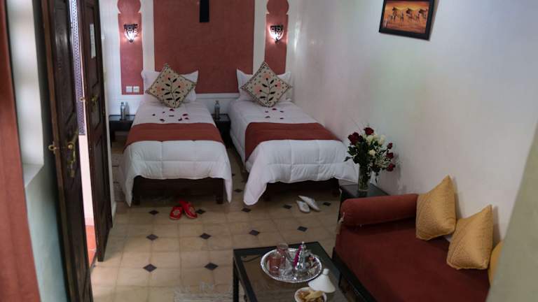 Die Zimmer im Dar Asdika sind liebevoll gestaltet und vermitteln eine authentische marokkanische Atmosphäre. Das traditionelle Dekor mit Bögen und schmiedeeisernen Betten verleiht den Zimmern einen einzigartigen Charme. Die klimatisierten Zimmer bieten Komfort und Entspannung nach einem Tag voller Erkundungen. Das Tadelakt-Badezimmer ist mit einer Dusche und einem Haartrockner ausgestattet. Kostenloses WLAN steht in allen Zimmern zur Verfügung.