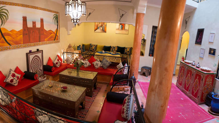 Das Dar Asdika liegt ideal im Herzen von Marrakesch, nur 5 Gehminuten vom Djemaa-el-Fna-Platz entfernt. Hier finden Sie eine Fülle von Restaurants, Geschäften und Unterhaltungsmöglichkeiten. Der majestätische Majorelle-Garten ist ebenfalls nur 10 Gehminuten entfernt und bietet eine Oase der Ruhe und Schönheit. Die zentrale Lage des B&B ermöglicht es Ihnen, die pulsierende Atmosphäre der Stadt zu erleben und gleichzeitig einen Rückzugsort in der Nähe zu haben.