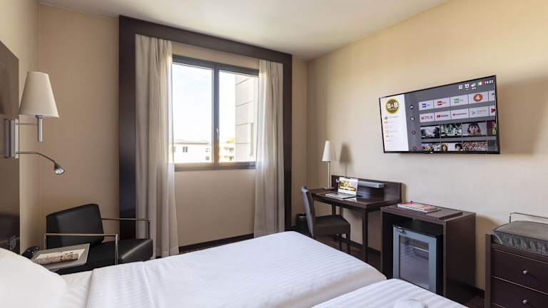 Das B&B Hotel Arezzo bietet 79 Zimmer auf 4 Etagen. Die Zimmer sind modern eingerichtet und verfügen über Annehmlichkeiten wie WLAN, einen LCD-TV, eine Minibar und einen Schreibtisch. Es gibt auch rollstuhlgerechte Zimmer und barrierefreie Badezimmer.