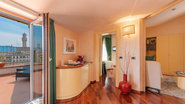 Das B&B Hotel Firenze Pitti Palace al Ponte Vecchio ist ein charmantes Hotel im Turm Torre dei Rossi aus dem 13. Jahrhundert, direkt neben der berühmten Ponte Vecchio. Hier erwartet Sie eine einzigartige Atmosphäre und eine atemberaubende Aussicht von der Dachterrasse auf die Stadt. Die Lage des Hotels ist ideal, um die Sehenswürdigkeiten von Florenz zu erkunden, da die Uffizien und die Kathedrale nur wenige Gehminuten entfernt sind. Das Hotel bietet komfortable Zimmer mit herrlichen Ausblicken auf den Fluss Arno oder das mittelalterliche Stadtgebiet. Das Restaurant auf der obersten Etage verwöhnt Sie mit lokaler Küche und bietet ebenfalls eine Panoramaterrasse.