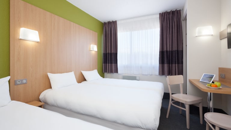 Die Zimmer im B&B HOTEL Nîmes Ville Active sind klimatisiert und bieten einen komfortablen Aufenthalt. Jedes Zimmer verfügt über einen Schreibtisch und einen Flachbild-Sat-TV. Das eigene Badezimmer ist mit einer Badewanne ausgestattet und es gibt auch ein separates WC. Rollstuhlgerechte Zimmer mit barrierefreiem Badezimmer sind ebenfalls verfügbar. WLAN steht Ihnen kostenlos zur Verfügung.