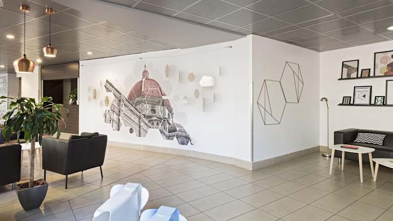 Das Hotel befindet sich im Handelszentrum von Florenz, in der Nähe des Flughafens und der Autobahn A1. Das historische Stadtzentrum ist bequem mit dem Bus erreichbar, mit einer Haltestelle in unmittelbarer Nähe des Hotels. Die Umgebung bietet eine gute Anbindung an öffentliche Verkehrsmittel und ermöglicht es den Gästen, die Sehenswürdigkeiten und Attraktionen von Florenz leicht zu erkunden.