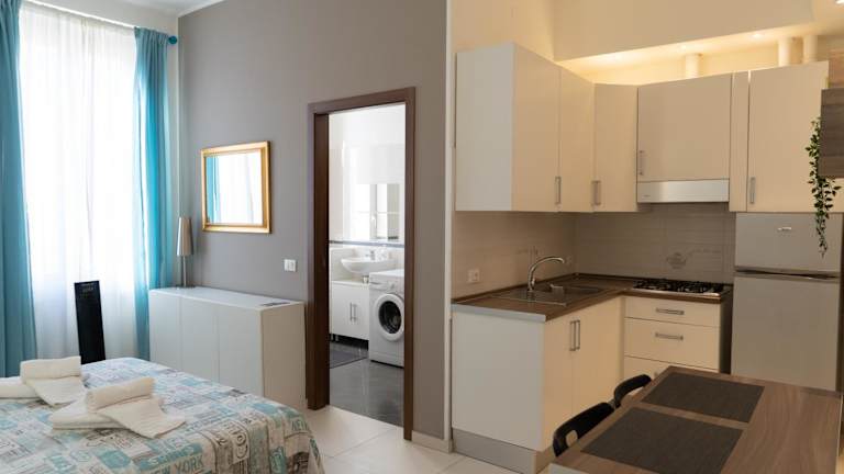 Die Zimmer sind mit einer voll ausgestatteten Küche, einem Kühlschrank, einer Kaffeemaschine und einem Flachbild-TV ausgestattet. Jedes Zimmer verfügt über ein eigenes Badezimmer mit Bidet und Dusche. Einige Wohneinheiten bieten zusätzlich einen Sitzbereich und/oder einen Balkon.
