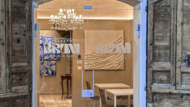 Das B&B Palazzo Bruni - Dimora di Mare bietet eine komfortable Unterkunft mit kostenlosem WLAN und Klimaanlage. Zur Ausstattung gehören eine Gemeinschaftslounge sowie eine Terrasse. Ein Privatparkplatz steht vor Ort zur Verfügung.