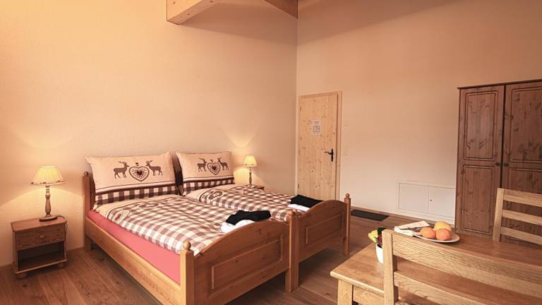 Die Zimmer im B&B Panorama sind im traditionellen Landhausstil eingerichtet und bieten einen gemütlichen Rückzugsort mit einem herrlichen Blick auf die Berge. Die Zimmer verfügen über Holzmöbel und Holzböden und sind mit einem eigenen Badezimmer oder einem Gemeinschaftsbad ausgestattet.