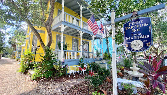 Das Penny Farthing Inn ist ein charmantes viktorianisches Bed & Breakfast im historischen St. Augustine. Mit seiner Terrasse im Freien und kostenfreiem WLAN bietet es den perfekten Ort, um die Stadt zu erkunden. Genießen Sie den Komfort der klimatisierten Zimmer, die mit Kabel-TV und kostenfreien Pflegeprodukten ausgestattet sind. Einige Zimmer verfügen über besondere Annehmlichkeiten wie einen Kamin oder einen eigenen Balkon. Das reichhaltige Frühstück mit klassischen englischen Gerichten sorgt für einen guten Start in den Tag. Die zentrale Lage des Bed & Breakfasts ermöglicht es Ihnen, die nahegelegenen Sehenswürdigkeiten wie das Old St Augustine Village, den Freedom Trail und das Ximenez-Fatio House zu Fuß zu erkunden. Kostenlose Parkplätze stehen Ihnen zur Verfügung, damit Sie bequem die Umgebung erkunden können.