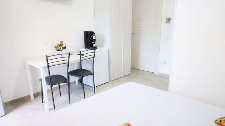 Die Zimmer sind mit einem Kühlschrank, einer Mikrowelle, einer Kaffeemaschine und einem Wasserkocher ausgestattet.