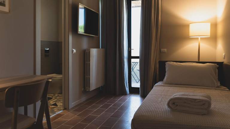 Das Frühstück wird in italienischer Art angeboten. Es bestehen weitere Möglichkeiten zur Essenslieferung in die Unterkunft, und die Gäste können auch in ihrem Zimmer frühstücken.