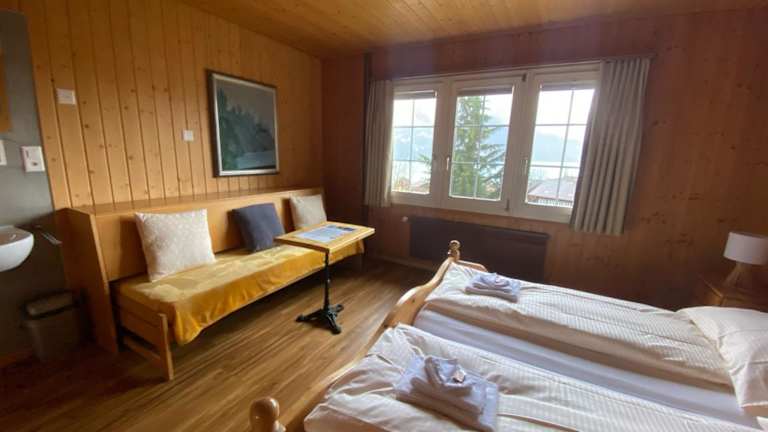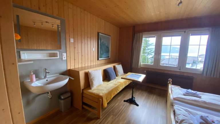 Die Unterkunft besteht aus zwei nebeneinanderliegenden Gebäuden und bietet komfortable Zimmer mit wunderschönem Blick auf die Umgebung. Die meisten Zimmer bieten einen Blick auf die Giessbachfälle, Brienz, Interlaken und Iseltwald. Einige Zimmer verfügen über ein eigenes Bad und einen Sitzbereich, um Ihnen zusätzlichen Komfort zu bieten. Die Zimmer sind gemütlich eingerichtet und bieten eine entspannte Atmosphäre für einen angenehmen Aufenthalt.