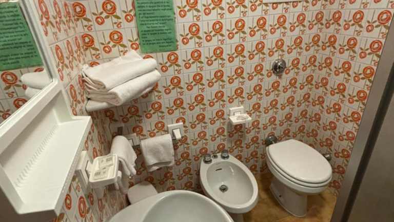 Die Zimmer verfügen über ein voll ausgestattetes eigenes Badezimmer mit Bidet und kostenlosen Pflegeprodukten.