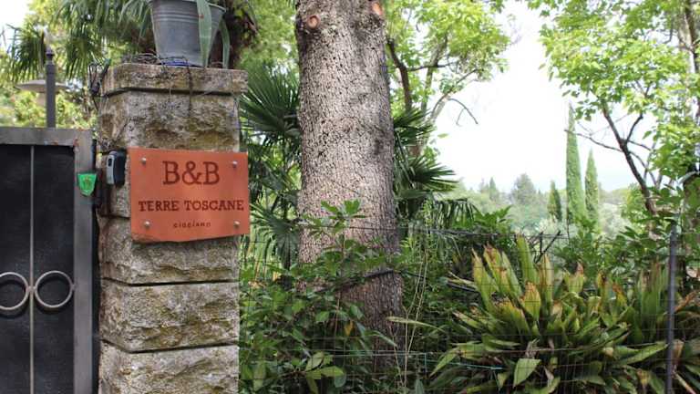 B&B Terre Toscane bietet Übernachtungsmöglichkeiten mit Stadtblick, einschließlich einer Terrasse und eines Balkons. Die Ferienwohnung umfasst einen Garten mit Grillmöglichkeiten und bietet kostenloses WLAN sowie kostenfreie Parkplätze.