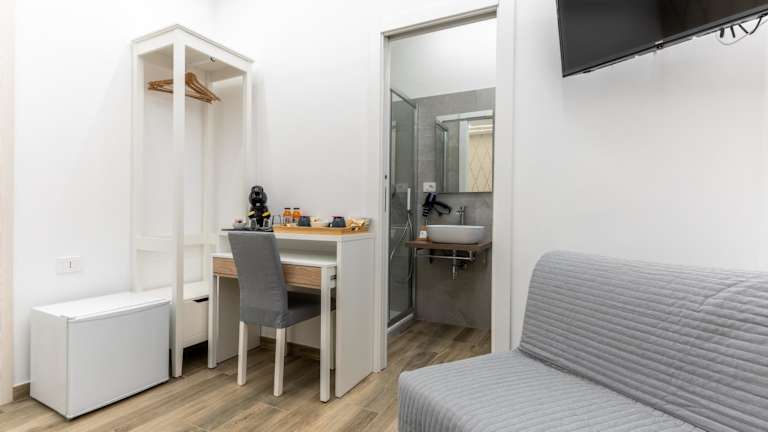 Jede Wohneinheit ist mit einem eigenen Badezimmer und einem Bidet ausgestattet. Zusätzlich sind eine Klimaanlage, ein Flachbild-TV und ein Kühlschrank vorhanden. Das eigene Badezimmer ist voll ausgestattet mit einer Dusche und kostenlosen Pflegeprodukten.