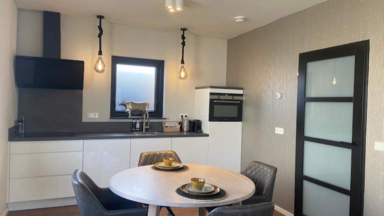 B&B Tussen Vecht en Veer bietet Übernachtungsmöglichkeiten in einer gut ausgestatteten Ferienwohnung mit einem Schlafzimmer und einem Wohnzimmer. Die Gäste haben Zugang zu einer Sauna und können die ruhige Lage mit Gartenblick genießen. Der Garten umfasst auch eine Terrasse und Gartenmöbel.