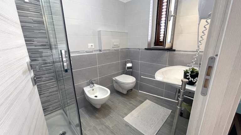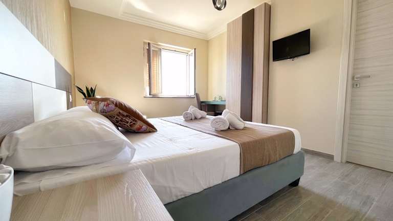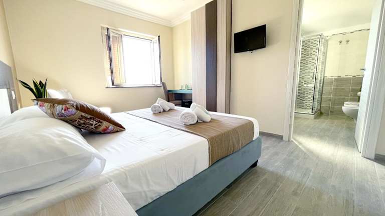 Die Zimmer sind mit einer Terrasse ausgestattet und verfügen über Klimaanlage, Flachbild-TV sowie ein eigenes Badezimmer mit Bidet und kostenlosen Pflegeprodukten. Ein voll ausgestattetes Badezimmer mit Dusche und Haartrockner ist ebenfalls vorhanden.