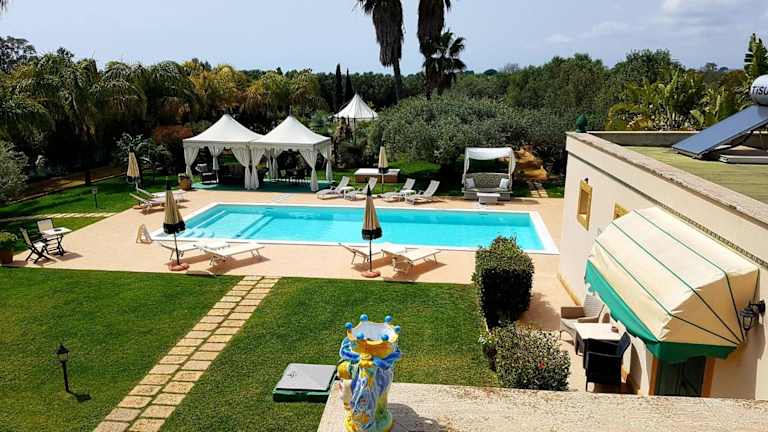 Das B&B Villa Sogno ist ein charmantes Hotel im neoklassizistischen Stil, das exklusiv für Erwachsene reserviert ist. Genießen Sie den atemberaubenden Blick auf die Küste von Castelvetrano Selinunte und die Tempel in der Ferne von der Terrasse aus. Die Zimmer sind im maurischen Stil eingerichtet und jedes Zimmer ist einem bestimmten Edelstein gewidmet. Entspannen Sie im 4.000 m² großen Park mit Palmen, Zitrus- und Olivenbäumen oder nutzen Sie das Fitnesscenter und den Pavillon für Ayurveda-Massagen. Der Außenpool mit Hydromassage-Ecke lädt zum Schwimmen ein. Das B&B Villa Sogno befindet sich im Viertel Latomie in Castelvetrano Selinunte, nur 2 km vom Strand in Marinella di Selinunte entfernt.