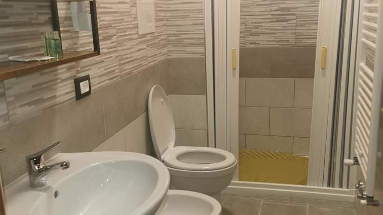 Die Zimmer sind mit einem eigenen Badezimmer ausgestattet, das ein Bidet und eine Dusche umfasst. Weitere Annehmlichkeiten sind Klimaanlage, Flachbild-TV und Kühlschrank, die den Gästen zur Verfügung stehen.