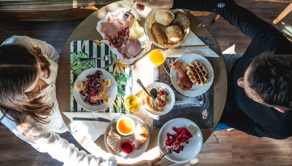 Ein reichhaltiges Frühstücksbuffet ist ein perfekter Start in den Tag. Genießen Sie unsere variierendes Gourmet Menu mit salzigen und süßen Speisen von 8.00 bis 9.30 Uhr, im Zimmerpreis inbegriffen. Heiße Getränke Milch, Säfte Jogurt Frisches Gebäck und Kuchen Brot, Müesli und Cereals Wurst und Käseplatten Eier und Bacon Frisches Obst und Gemüse Butter, Marmelade, Honig und Nutella