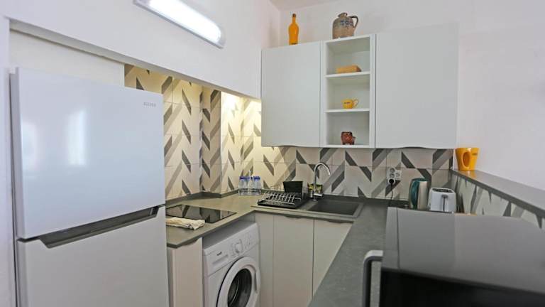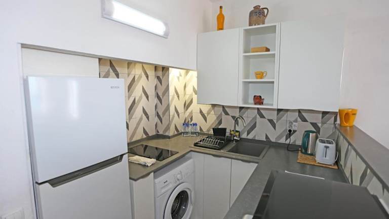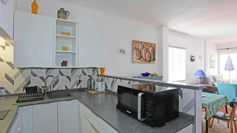 Die Ferienwohnung verfügt über zwei Schlafzimmer, ein Wohnzimmer, einen Flachbild-TV und eine gut ausgestattete Küchenzeile. Außerdem sind ein Badezimmer mit Bidet und Badewanne sowie die Bereitstellung von Handtüchern und Bettwäsche vorhanden. Ein Balkon mit Meerblick ergänzt die Ausstattung.