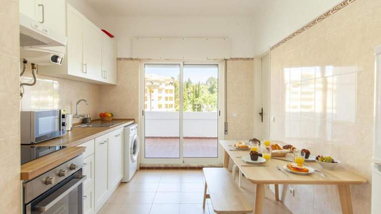 Die Ferienwohnung verfügt über zwei Schlafzimmer, ein Wohnzimmer mit Flachbild-TV, eine gut ausgestattete Küche mit Kühlschrank und Geschirrspüler sowie zwei Badezimmer mit Dusche. Handtücher und Bettwäsche werden bereitgestellt.