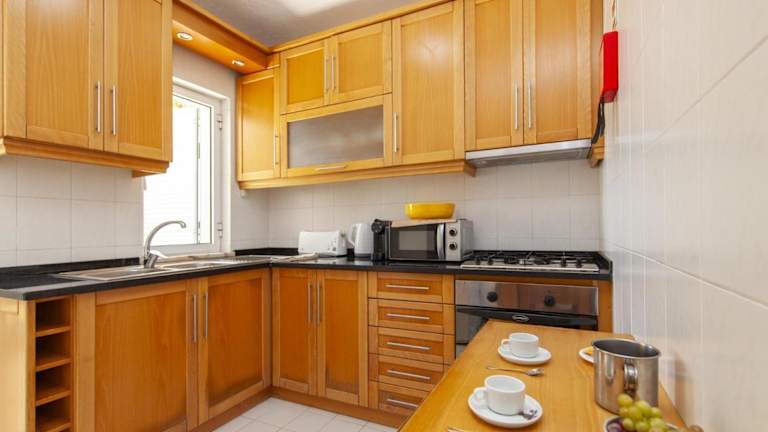 Die Ferienwohnung verfügt über Klimaanlage, 2 Schlafzimmer, ein Wohnzimmer, eine voll ausgestattete Küche mit Kühlschrank und Wasserkocher sowie 2 Badezimmer mit Bidet und Dusche.