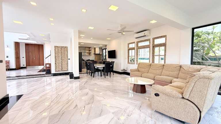 Die Baan Dhewaran Beachfront Villa liegt direkt am Strand von Na Jomtien und ist nur einen kurzen Spaziergang von mehreren Strandrestaurants in Pattaya entfernt. Die Villa befindet sich in einem Boutique-Dorf mit 24-Stunden-Wachpersonal und bietet Ihnen einen traumhaften Blick auf das Meer von beiden Etagen aus. In der Umgebung können Sie verschiedene Wassersportmöglichkeiten wie Surfen und Kajakfahren ausprobieren. Der Wasserpark Ramayana ist nur 15 Autominuten entfernt und die bekannte Pattaya Walking Street erreichen Sie nach einer 20-minütigen Fahrt.